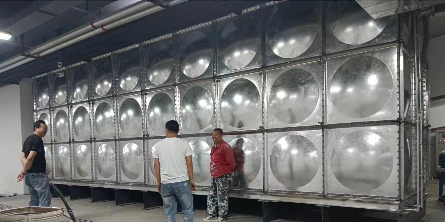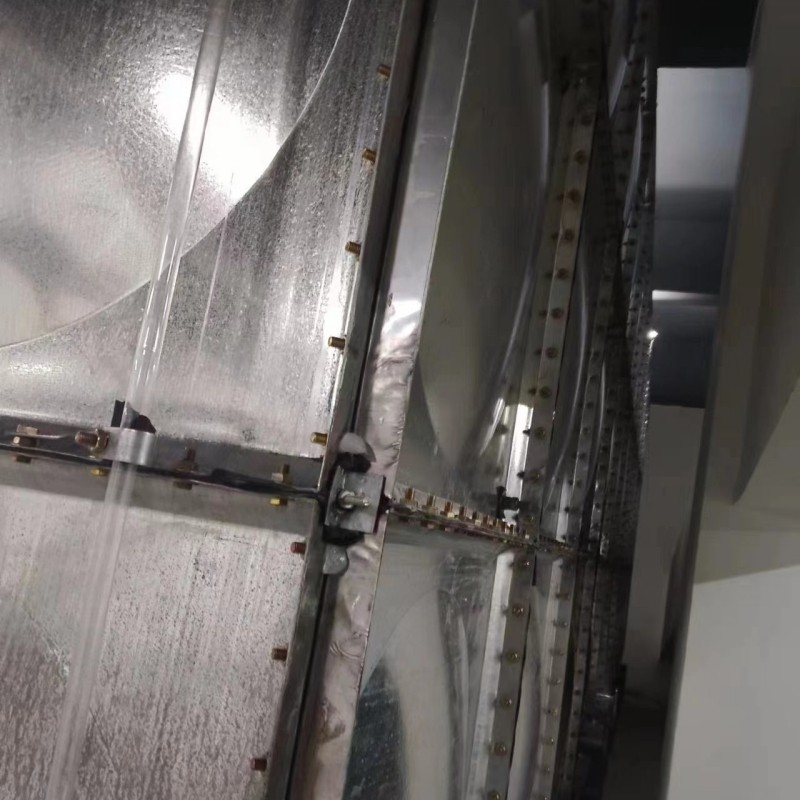 7. **選材優質**:熱鍍鋅水箱采用Q235鋼板,沖壓形成標準塊,經鍍鋅處理,現場進行組裝,組裝時標準塊之間硅膠密封,螺栓連接。
