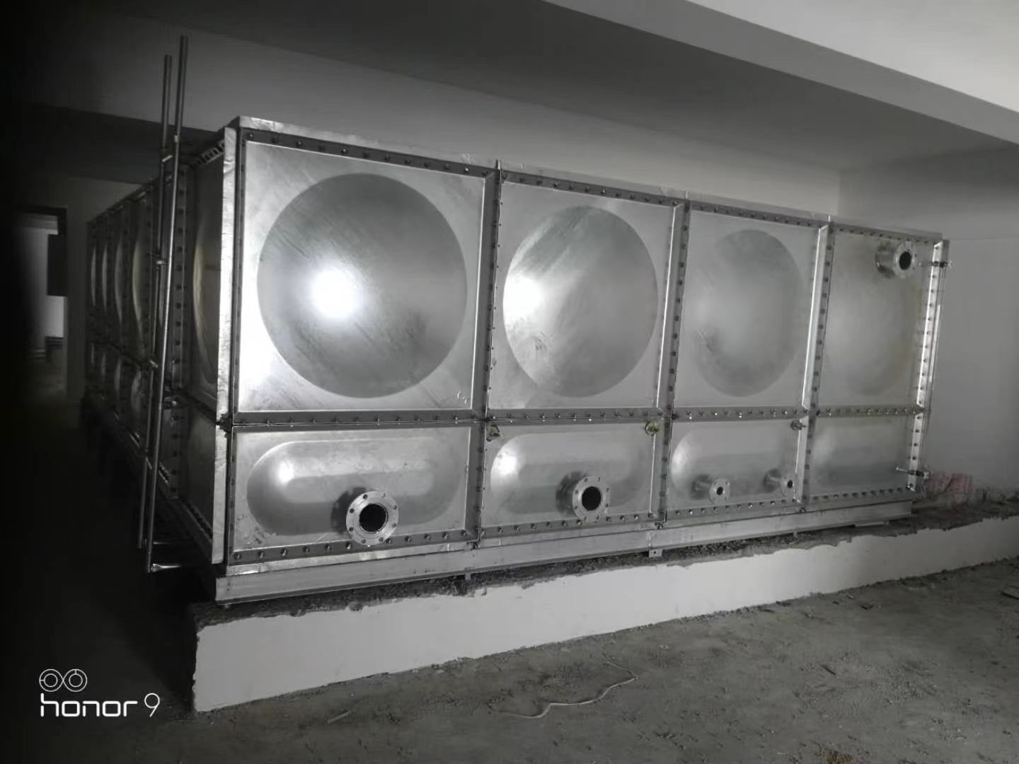 2、鍍鋅水箱的安裝、施工和驗收:專業焊工現場氬弧焊接。 施工現場有標準電源。水箱四周有≥500mm的檢修空間。外觀檢驗無銹蝕、無污染。注滿水二十四小時內,箱體無明顯變形,無滲漏為合格。