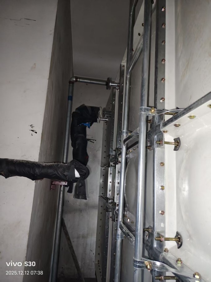 我公司承接的天津市河西區(qū)新城大廈一臺(tái)26.25立方玻璃鋼水箱已經(jīng)安裝完成。